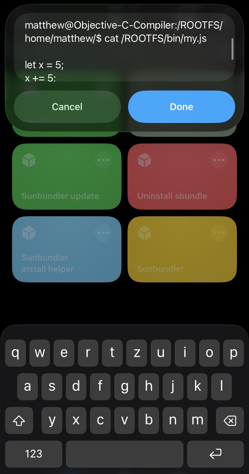 Xcuts is an extension of Apple’s Shortcuts. It began as a package manager, and then evolved to have a UN*X-like terminal, javascript module system, and UI library.