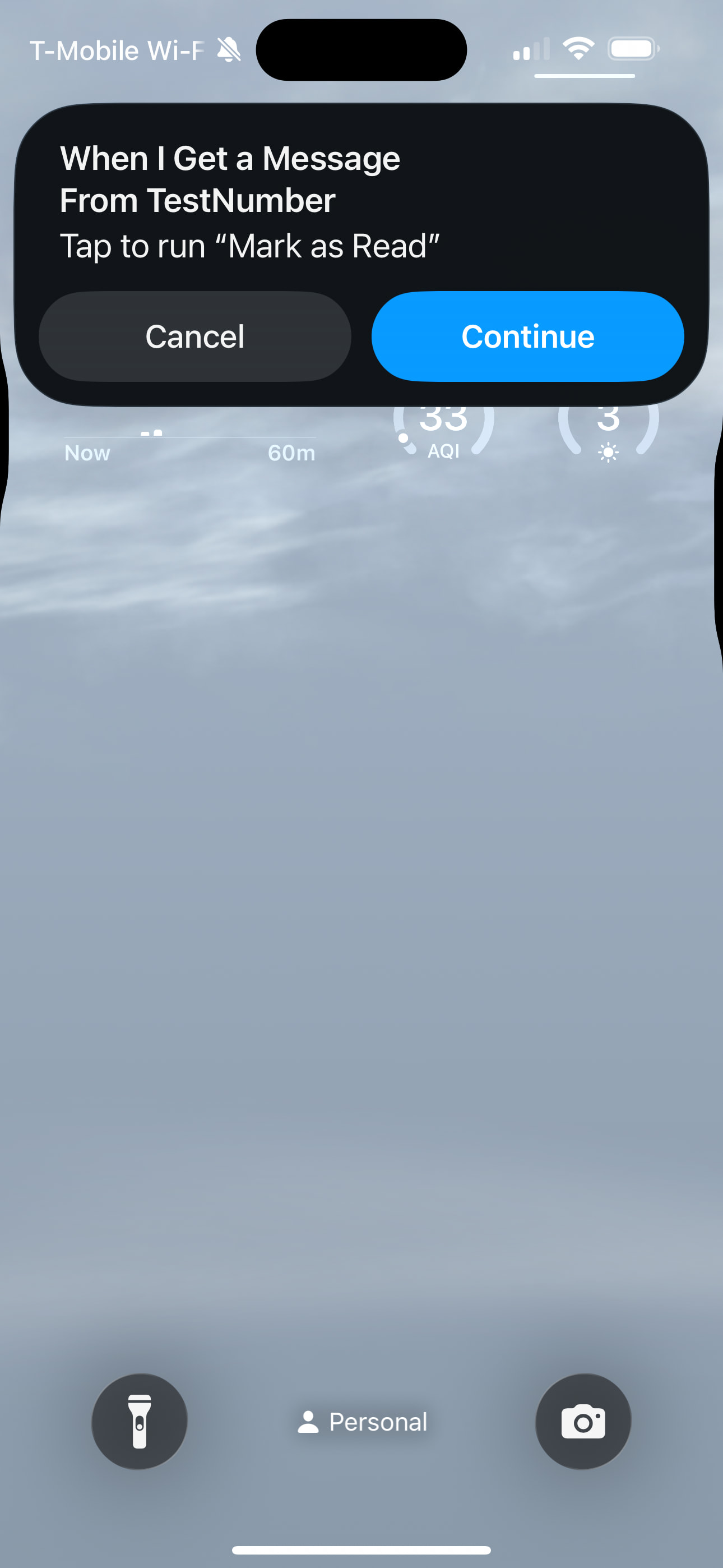 I have a Shortcut Automation that marks text message as read when received by a specific contact. It works fine when phone is unlocked but when phone is locked it will show a dialog prompt “Tap to run” with cancel/continue to run the Shortcut.