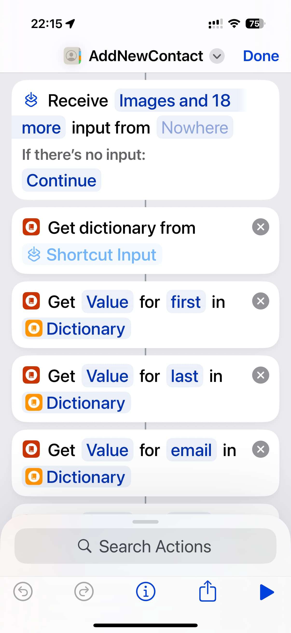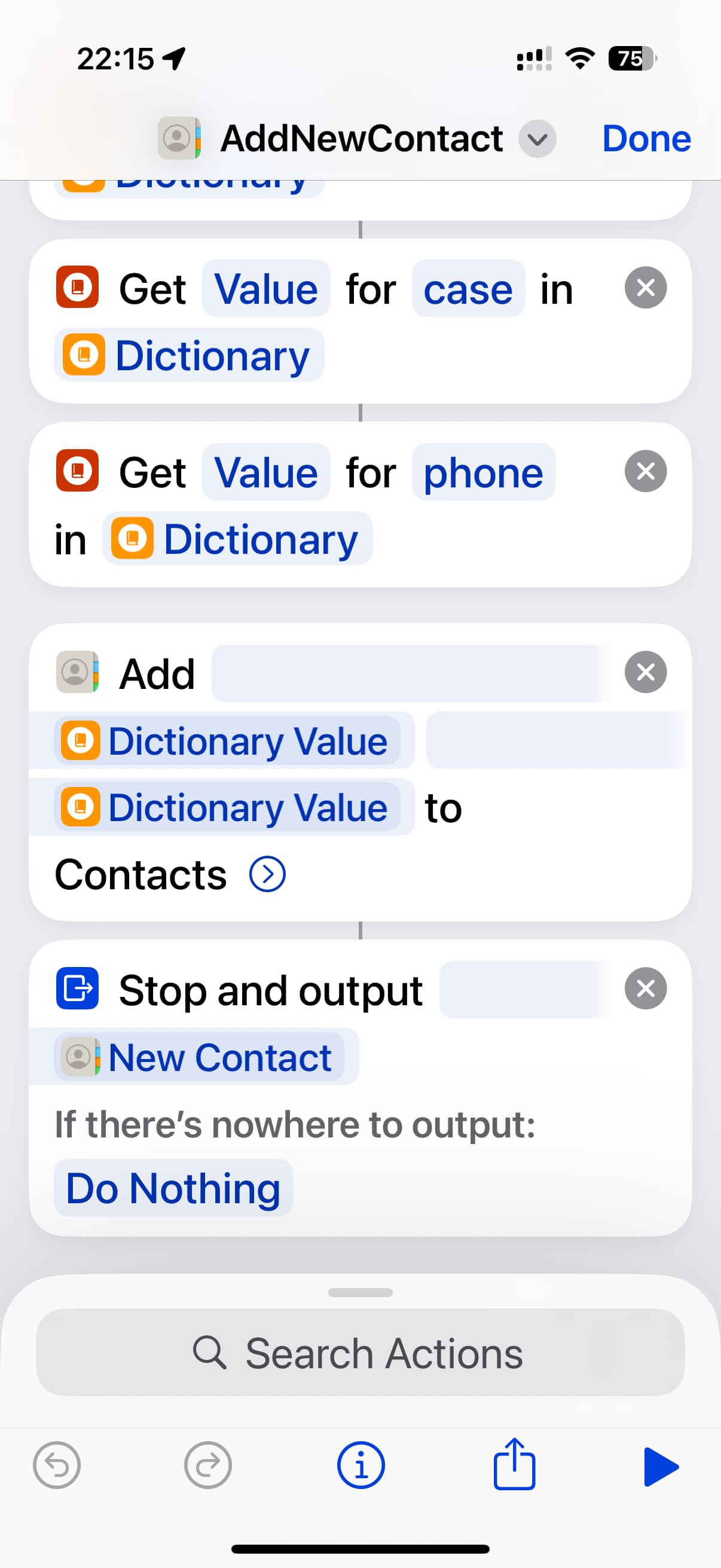 I’m adding a contact to a phone using PushCut + ShortCuts
