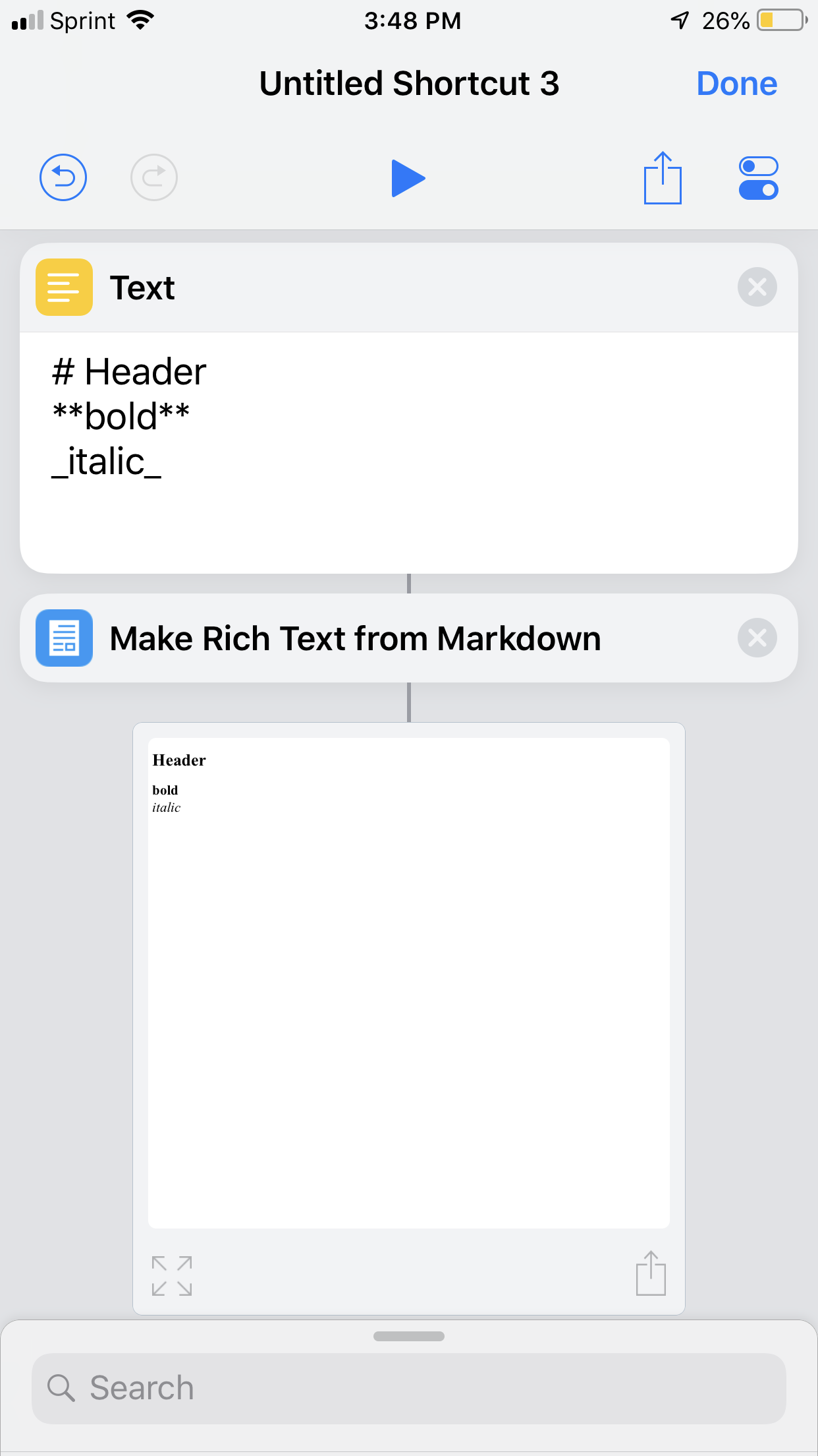I also made into a “function” of sorts. I like to extract this type of functionality into separate Shortcuts for modularity.