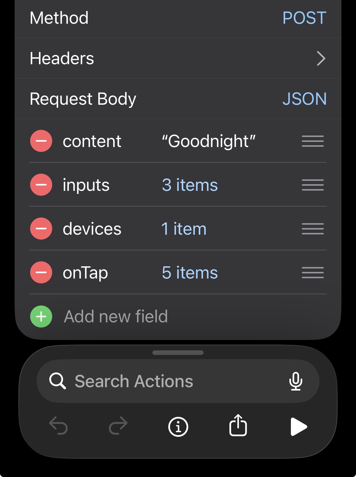 curl -X POST -d “{ "input0": "Content 1", "input1": "667"}” -H “Content-Type: application/json” https://api.pushcut.io/API-KEY-REDACTED/widgets/TstWidget